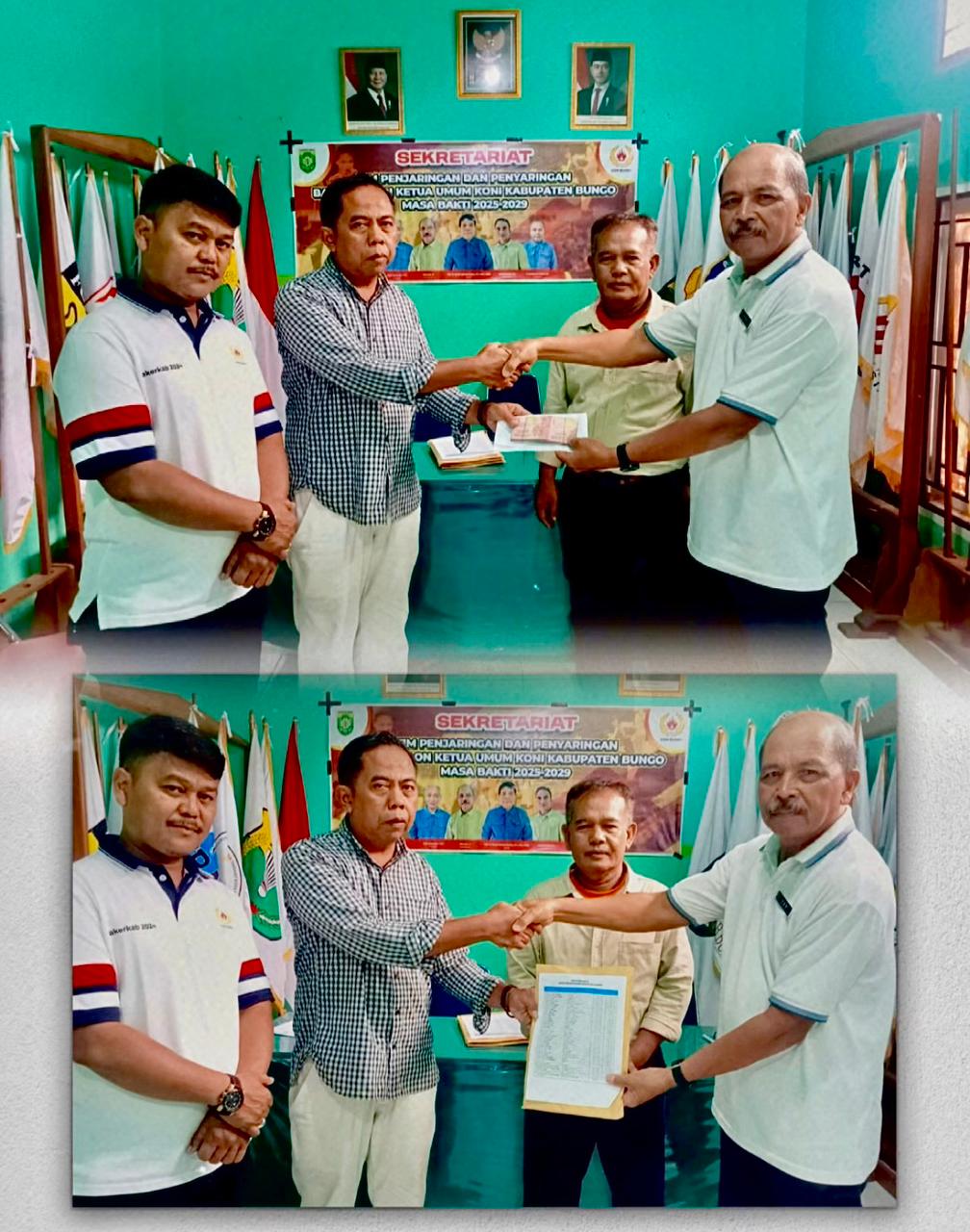 Bungo, delikjambi.com – Hari pertama jadwal pengambilan formulir pendaftaran Bakal Calon Ketua Umum Komite Olahraga Nasional Indonesia (KONI) Kabupaten Bungo masa bakti 2025–2029 resmi dibuka. Pada momen tersebut, Agustian, A.Md tercatat sebagai orang pertama yang mengambil formulir pendaftaran di Sekretariat Tim Penjaringan dan Penyaringan (TPP) KONI Bungo, Rabu (17/12/2025).