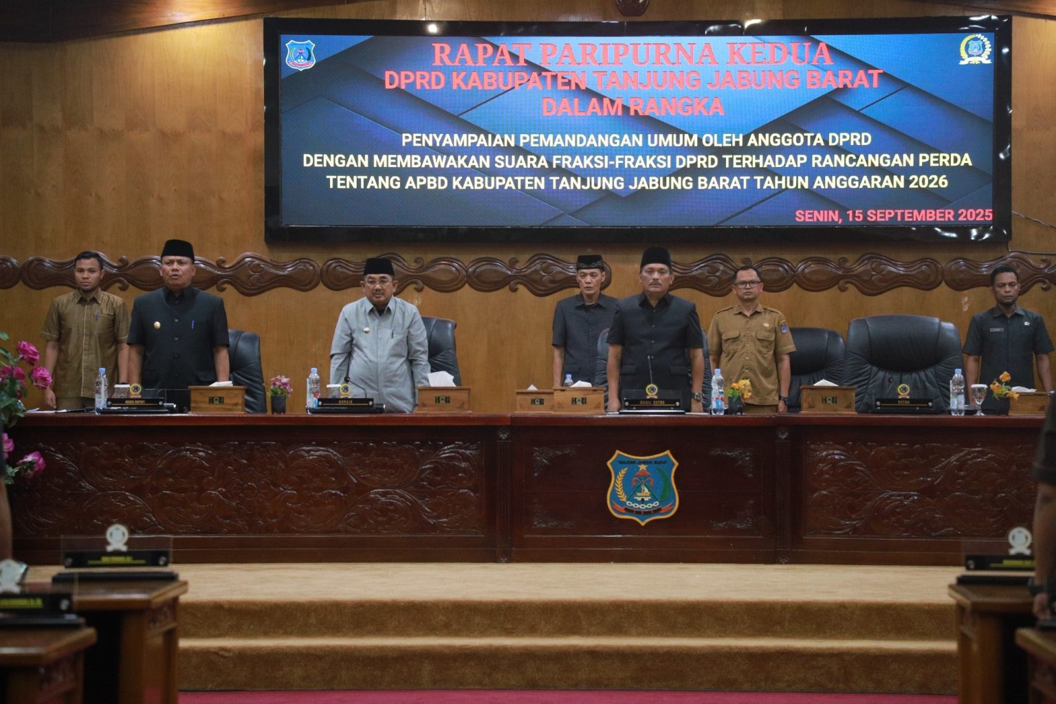 Rapat dipimpin Wakil Ketua I DPRD, H. Muh Sjafril Simamora, S.H., dan dihadiri Wakil Bupati, Anggota DPRD, Sekretaris Daerah, Kasi Intel Kodim, Kabag Ren Polres Tanjab Barat, pejabat tinggi pratama, administrator lingkup Pemkab Tanjab Barat, instansi vertikal, serta insan pers.