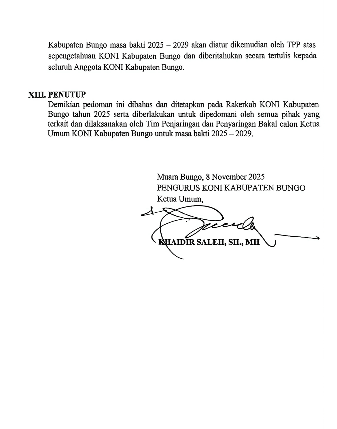 - Keenam, laporan hasil TPP pada saat Musorkab KONI Bungo tahun 2025, 29 Desember 2025.
