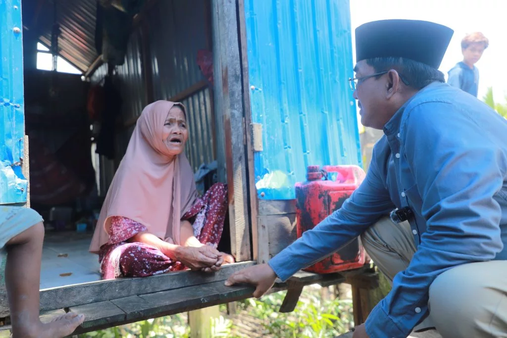 Kuala Tungkal, delikjambi.com – Wujud kepedulian terhadap warga kurang mampu kembali ditunjukkan oleh Bupati Tanjung Jabung Barat, Drs. H. Anwar Sadat, M.Ag. Bupati meninjau langsung kondisi rumah tidak layak huni milik Ibu Masrihat, seorang janda dengan lima anak, di Parit 5, Desa Tungkal I, Kecamatan Tungkal Ilir, Kamis (10/4).