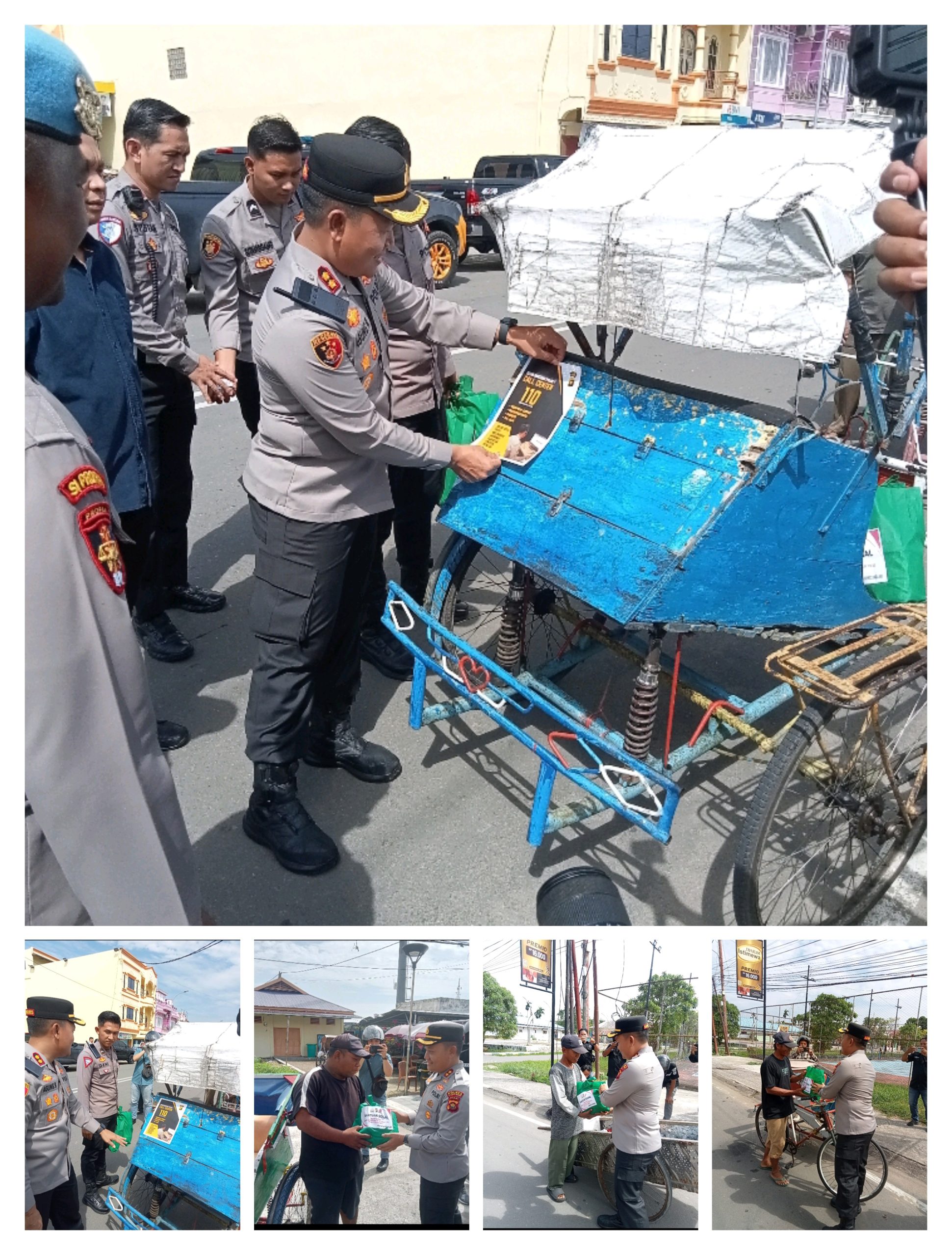 Tebar Kebaikan, Polres Tanjab Barat Berikan Bansos Untuk Abang Becak dan Penarik Gerobak.