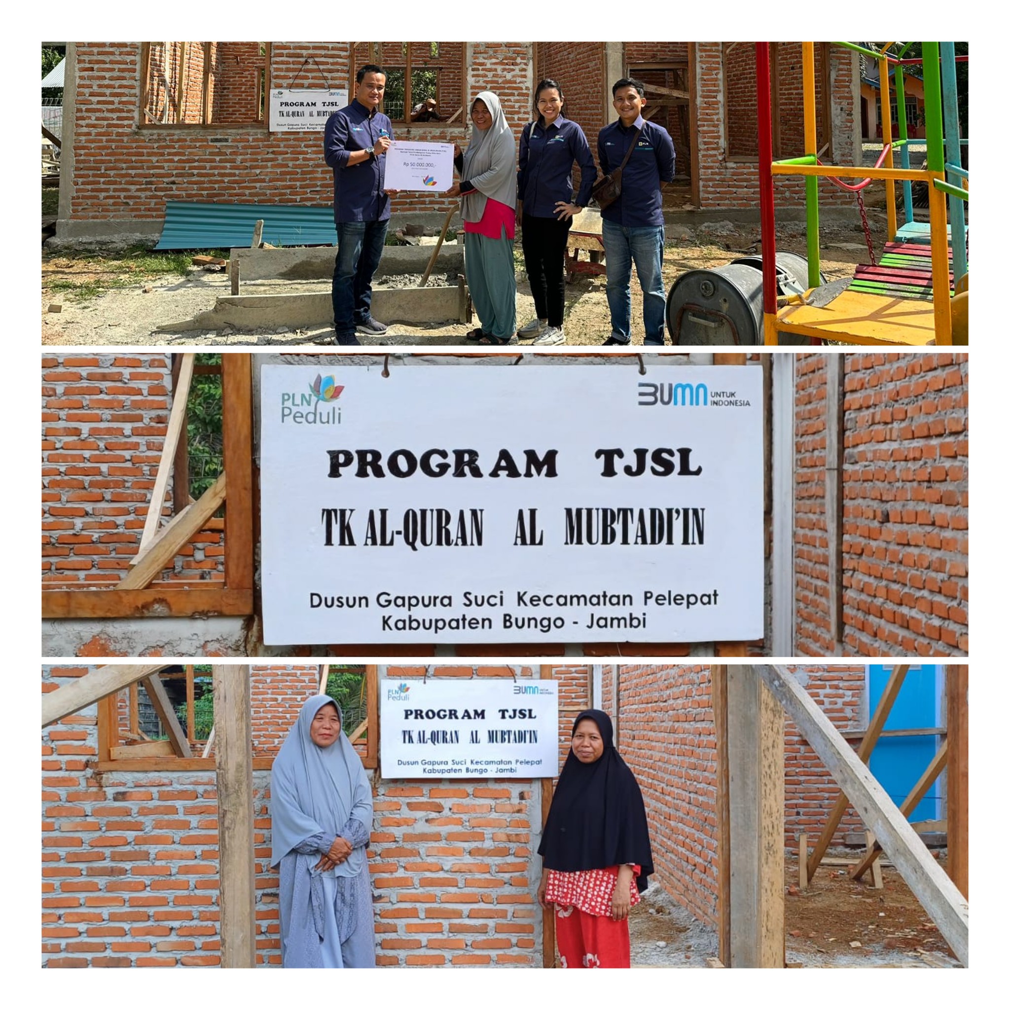 BUNGO, delikjambi.com — PT PLN (Persero) UP3 Muara Bungo terus memberi manfaat bagi masyarakat lewat pemberian bantuan melalui program-programnya. Kali ini, lewat Program Tanggung Jawab Sosial Lingkungan (TJSL) sebagai bentuk kepedulian terhadap pendidikan, PLN UP3 Muara Bungo memberikan bantuan senilai Rp 50.000.000,- untuk pembangunan ruang kelas baru dan ruang kantor TK Al Quran Al Mubtadiin yang berlokasi di Dusun Gapura Suci Kec. Pelepat Kab Muara Bungo Provinsi Jambi .