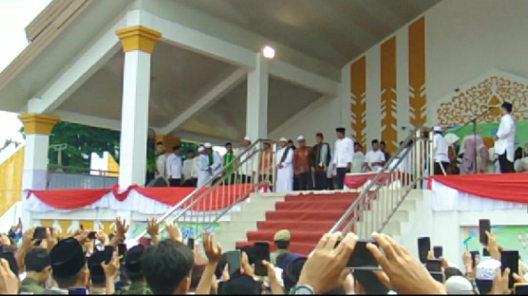 Tablik Akbar yang digelar di halaman depan kantor baru bupati Merangin tersebut, menghadirkan penceramah kondang Ustadz Abdul Shomat (UAS). Ribuan jemaah dari berbagai penjuru Merangin, ‘membanjiri’ Tablik Akbar tersebut.